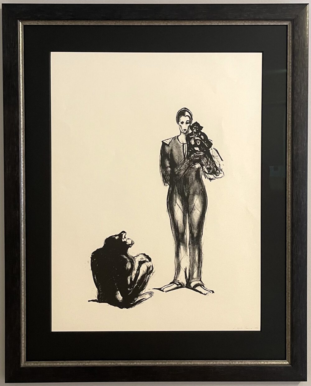 Innramming med antirefleksglass, sort passepartout og sort rammelist med sølvdetalj inngår i prisen. Selges kun med ramme.