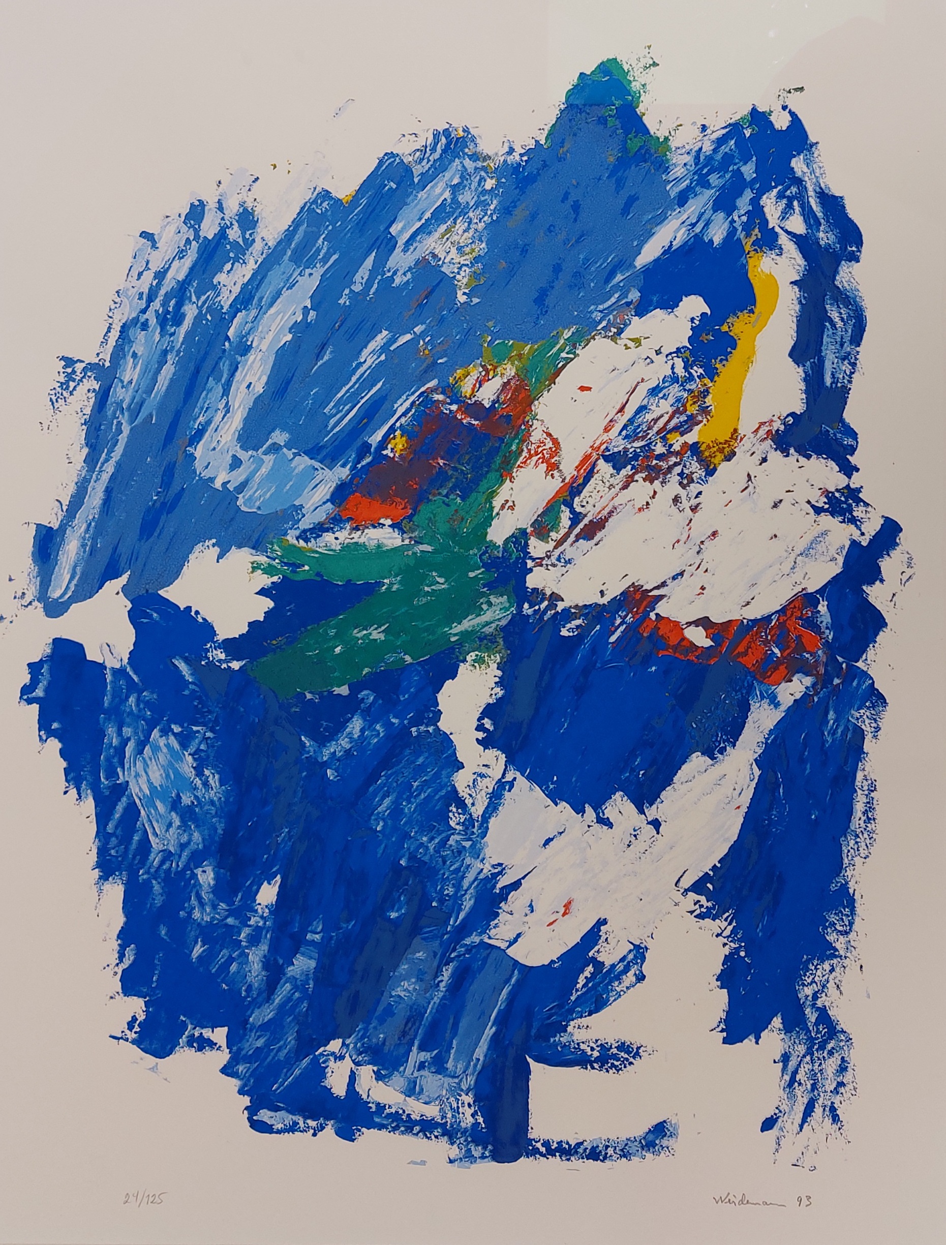 Eksisterende innramming med sølv rammelist, dobbel passepartout og artglass inngår i prisen som den er. Selges kun med ramme. Yttermål med ramme: 83×69. Bildet kan ses ferdig innrammet i galleriet.