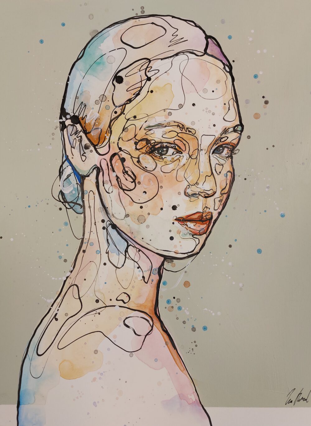 Teknikk: Akryl og tusj på papir