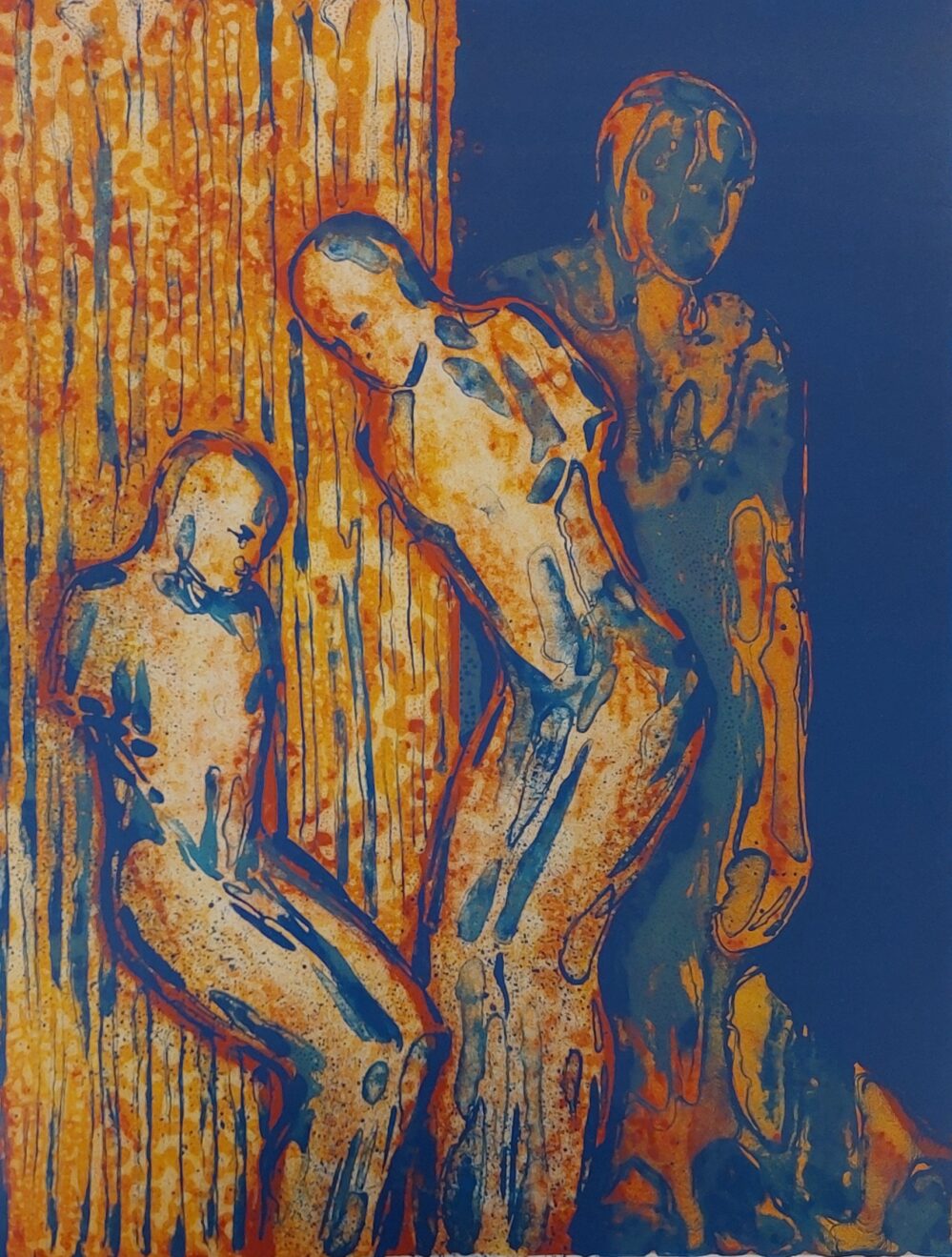 Innramming med gullramme, dobbel passepartout og vanlig glass er inkludert i prisen. Yttermål med ramme: 99×88,5.